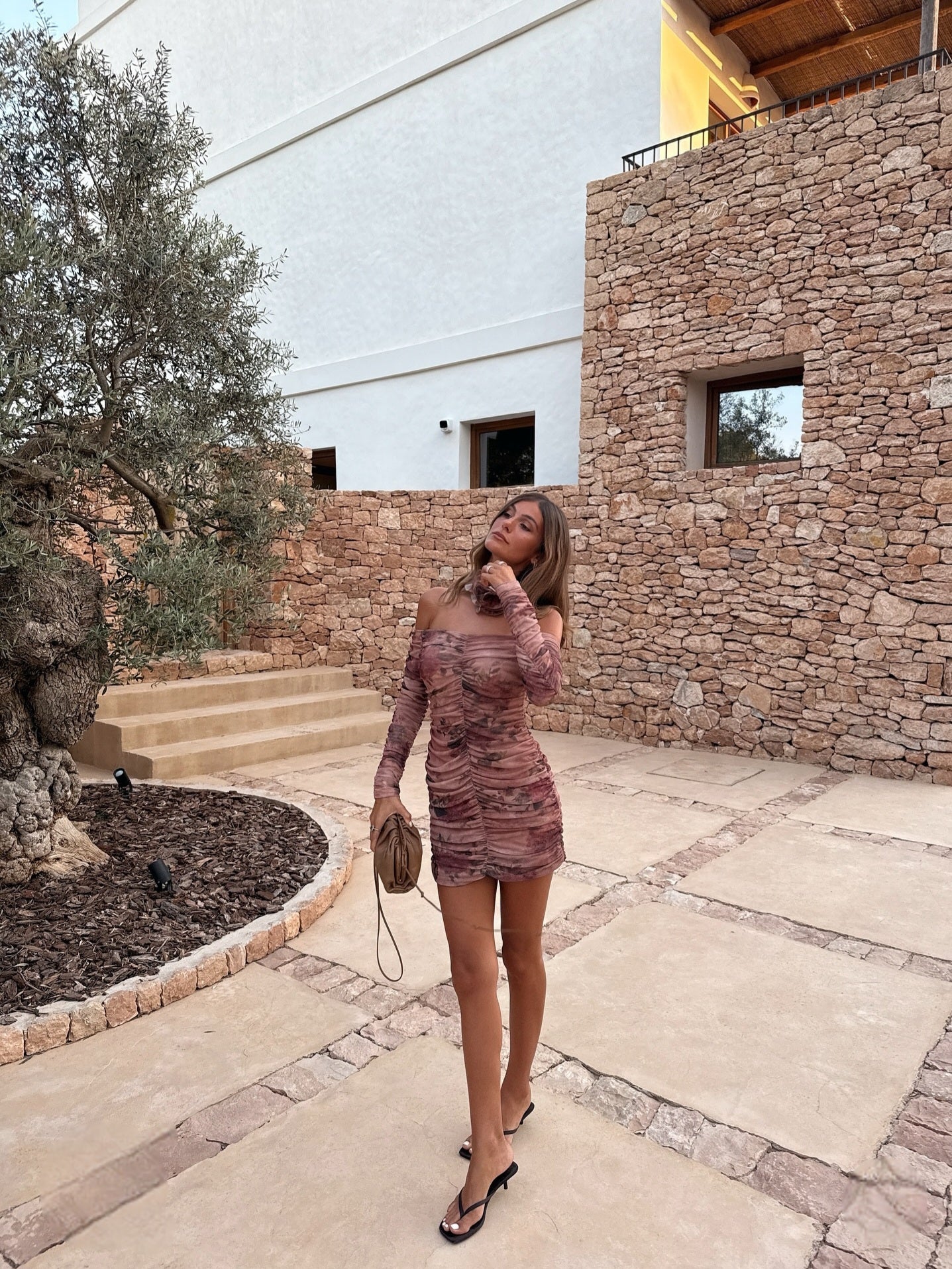Μίνι φόρεμα φλοράλ με ελαστικό ύφασμα.